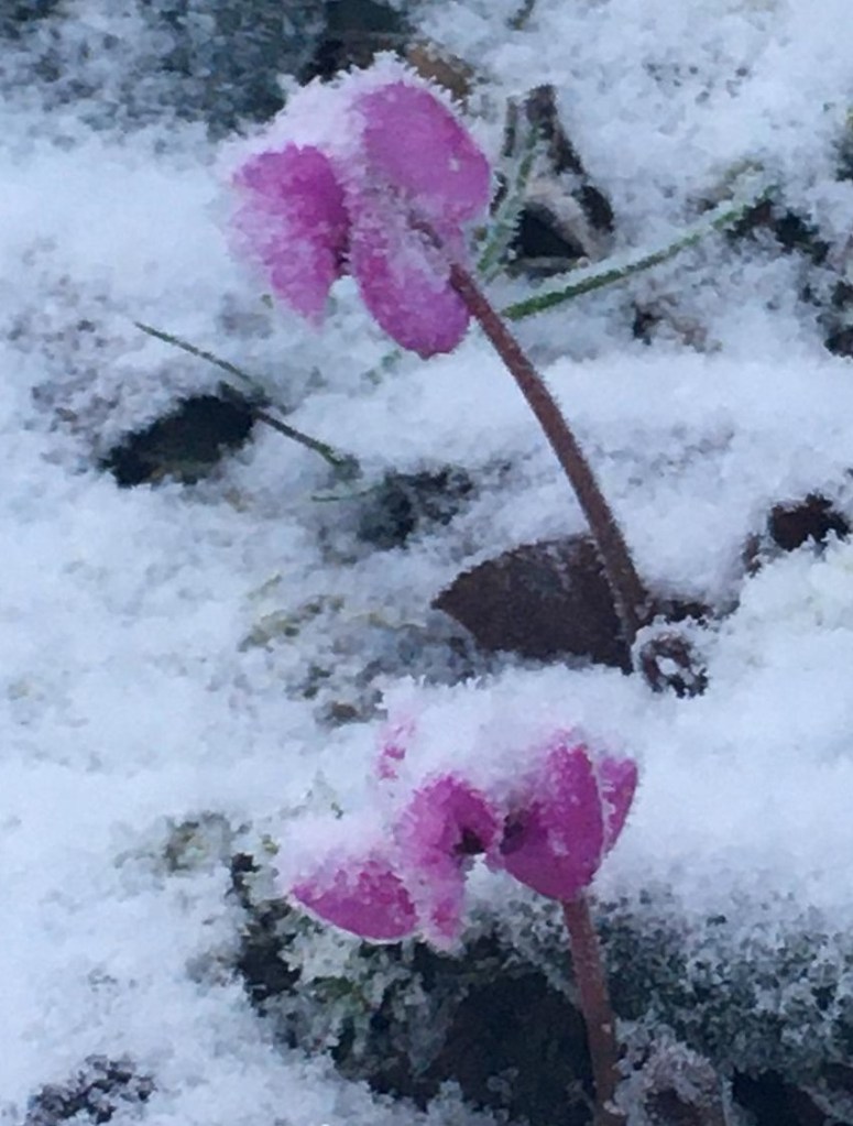 Cyclamen in fresh Snow photographed by my friend Gill Henwood in the Lake District.