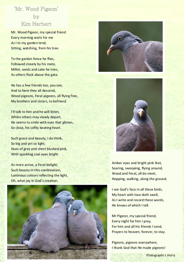This is another prize winner in my Pigeon Competition. My good friend Kim Herbert won in the poetry section.