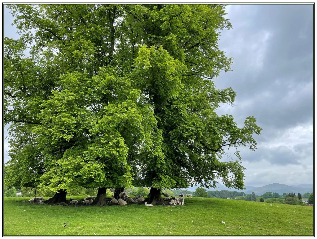 “Ewes and lambs in the shade of a lime tree clump in old parkland, near Hawkshead, Cumbria. Whoever dwells in the shelter of the Most High will rest in the shadow of the Almighty.Psalm 91:1