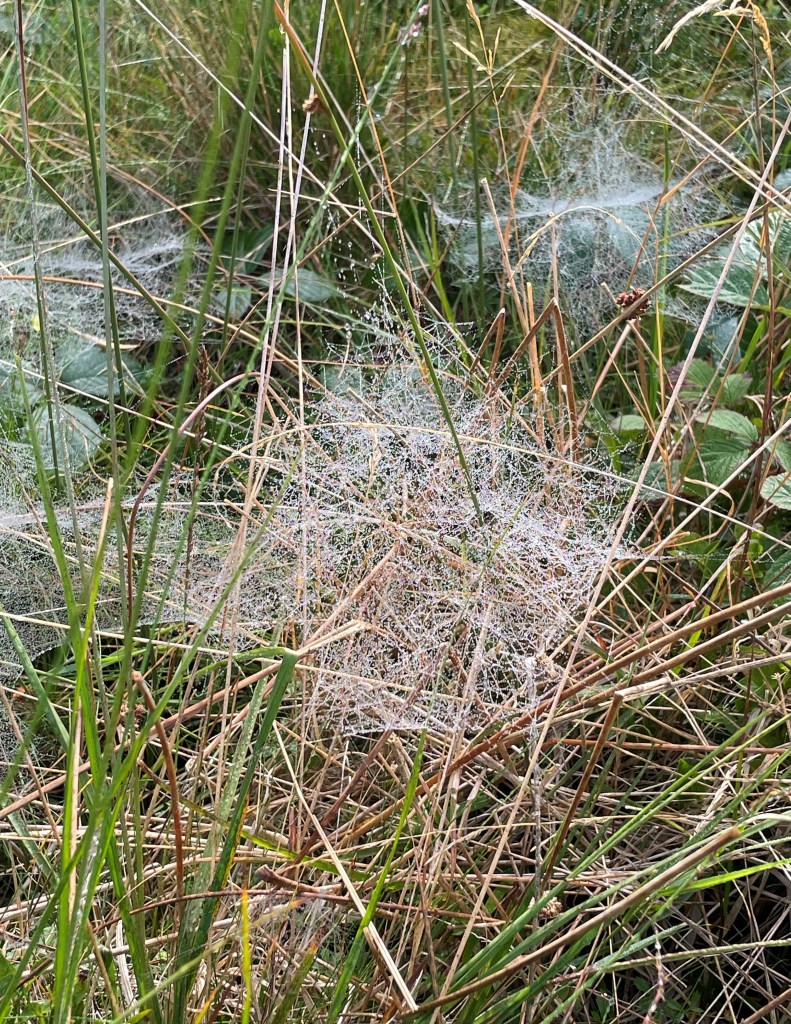 The evidence of spiders in our gardens and in the fields can be found on a low misty morning when the ground is strewn with gossamer webs, highlighted by frost. These can be found often in their hundreds. This is the work of one species particularly – the Common sheetweb spider or to give its posh name, Linyphia triangularis. It’s a very common species and its presence easily seen – the name sheetweb – may provide a clue!