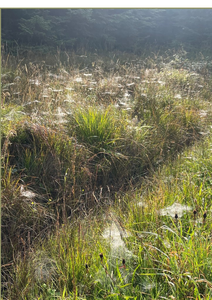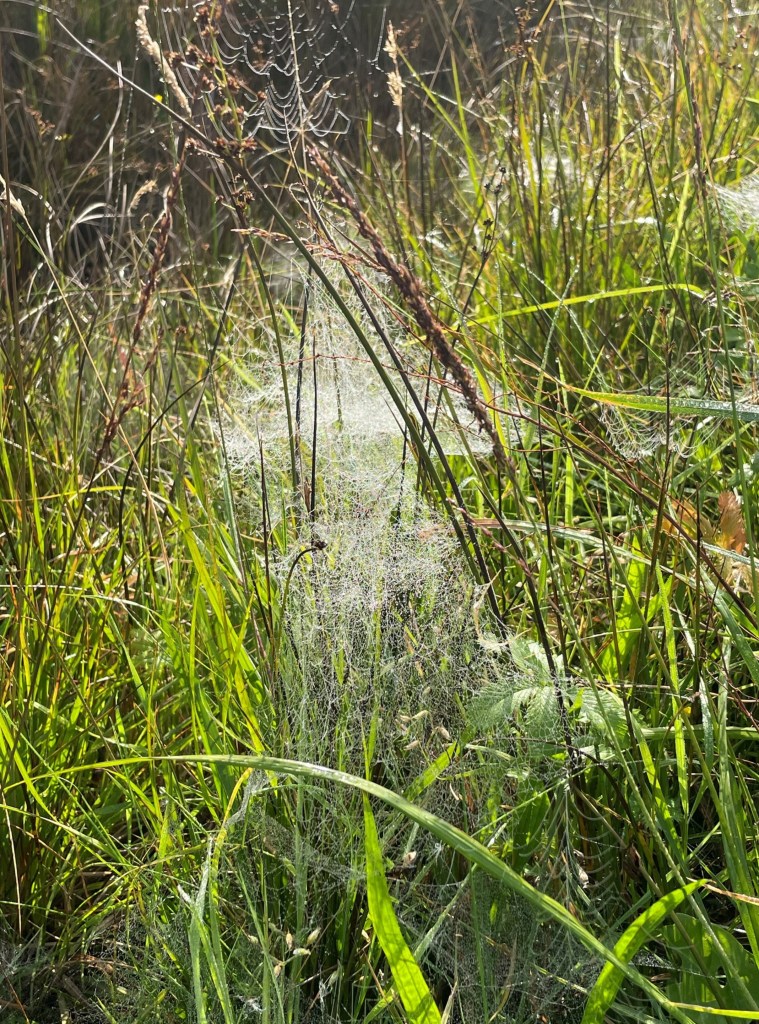 Spider Trail. photo by Gill HenwoodGrizedale, webs in the forest.