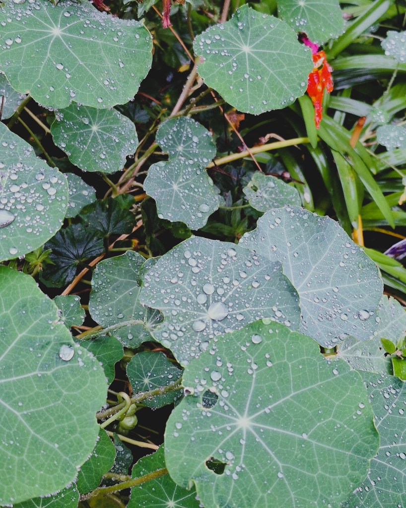 Wistfully gazing out of my window, Cyclamen, Helleborus niger, claim their winter birth, as salvias, pelargoniums, hydrangeas reaching old age, slip into hibernation, and late-flowering nasturtiums hide beneath dishes of protective leaves. Jack Frost will come soon, blowing his crystal dust, a winter overcoat under which plants will gently slumber.