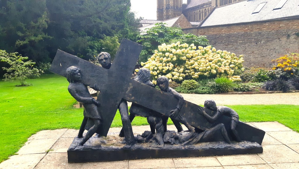 The message is clear in the sculpture in Wells. We cannot ignore our responsibility to change things for the world’s young ones, suffering because of what the so-called adult world is doing to them. It is human sin which is crushing the vulnerable and innocent victims because of what we are doing.