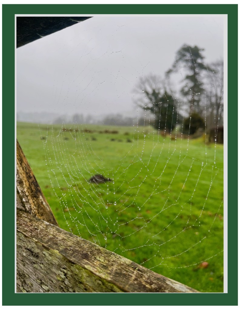 My thoughts centred on the fragility and ephemeral nature of the scene. A word often associated with spiders’ webs is ‘gossamer’ – a fine filmy substance consisting of cobwebs spun by spiders; light, thin, delicate, almost insubstantial. Certainly short-lived. But another way of seeing it is that of a thin place, a tissue paper kind of boundary between two worlds.