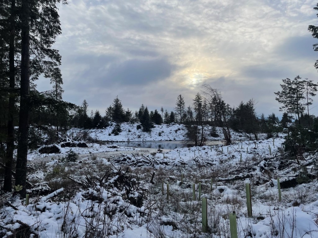 “Young beech saplings keep their copper leaves during the harshest weather – a promise of new growth in the slender buds along their twigs The green tubes in the foreground of Gooseyfoot Tarn (above) are seedlings planted among the roots of fallen and felled trees. All the larches were diseased and beeches on the tarn fringe were taken down too. It’s now open, with natural generation of conifer saplings and planted native deciduous woodland. Gooseyfoot Tarn is thought to be an old duck pond shoot from before the forestation, when Grizedale was moorland. There is still a wide variety of fungi in the soil and wild flowers along the tracks, despite the forestry activity. The ‘naff daff’ shoots are naturalised old bulbs from when this track was a field boundary. They started flowering a few years ago after the waterlogged land drains were restored and now line the path with jolly profusion! Survivors when much else drowned…
