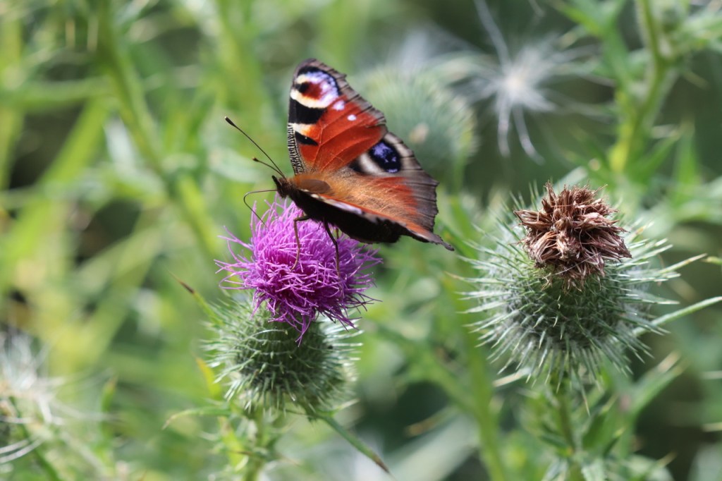 Peacock Butterfly on thistle. photo by The Revd Lynn Hurry