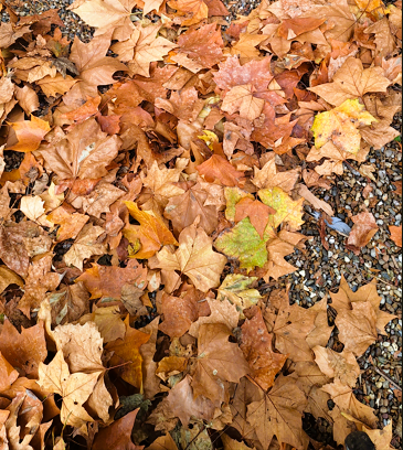 The dying of autumn leaves flutter down like confetti at a wedding where the bride and groom have long since departed. Soon they will be carpets strewn by nature over the dead, hiding what has been lost, grave clothes which will also fade and die.