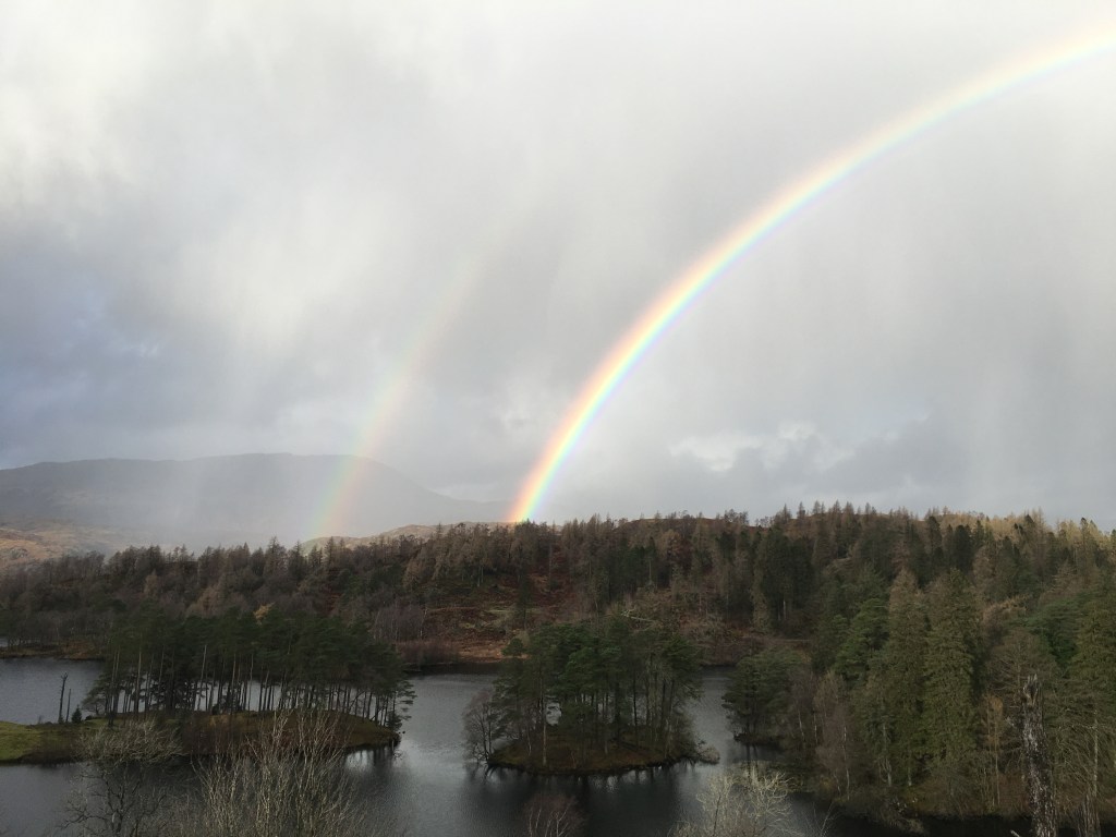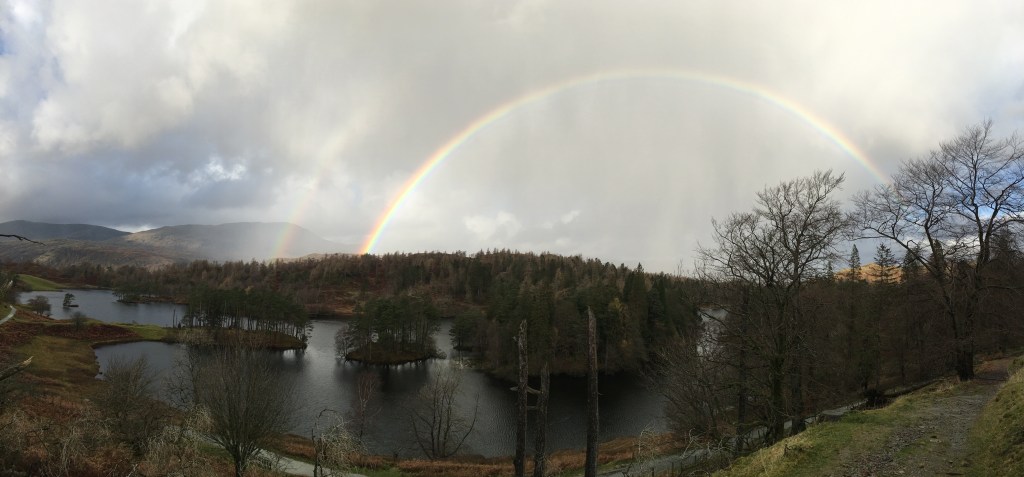 Jesus gives us the sign of the rainbow as he teaches the crowds about God’s blessing. He is up the mountain, atop a fell, with his followers and the curious crowd about him. As the rainbow gives us hope in the storm , when light breaks through and kisses the rains into glorious colours, Jesus gives us hope in God’s promise of blessing.