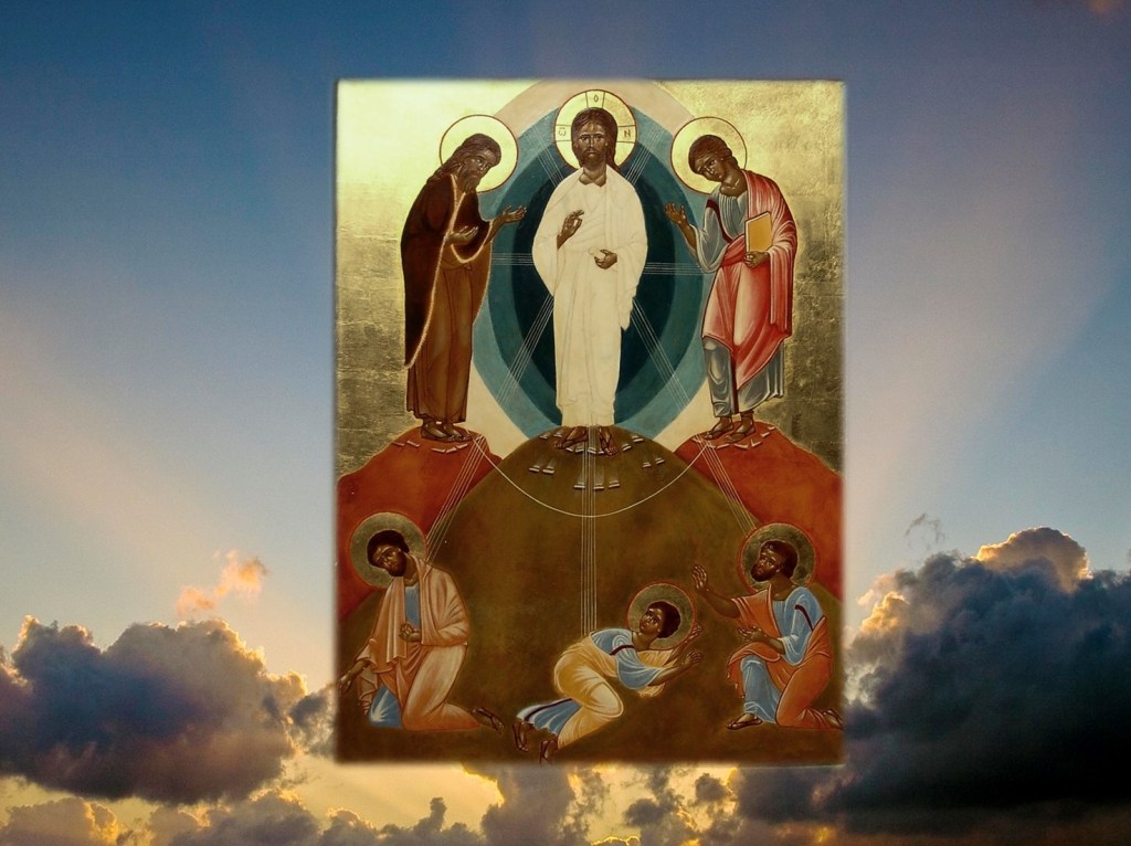 So in the Icon both Moses and Elijah are pointing their hand towards Jesus. See, they are saying, this is one whom God has sent to free you and love you into his Kingdom. Because Jesus is Transfigured then we, looking at him and making him the centre of our lives, can be Transformed too.