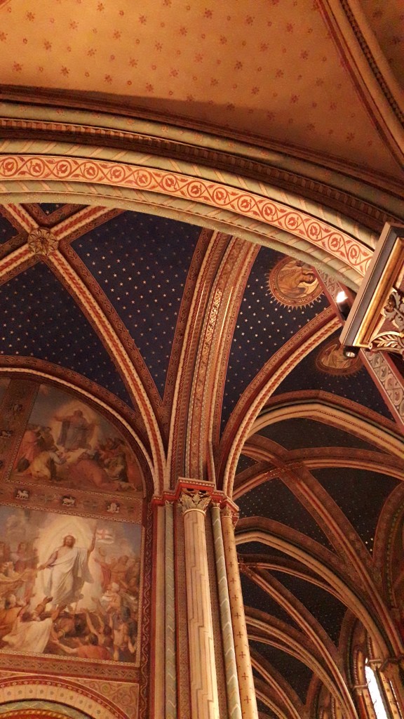 One of my pastimes is to be a ‘groupie’ with a local choir which includes friends. Last weekend we went to Paris where they presented two concerts and a musical involvement in the Saturday Mass at St Sulpice. It is currently acting as the Cathedral whilst Notre Dame is being restored. At the first concert, in the church of St Germain des Prés, some of the sopranos noticed a spider hovering over the choir as they sang. It had travelled quite a distance from the ceiling but by the end of the concert, it had disappeared. So I wrote this poem….